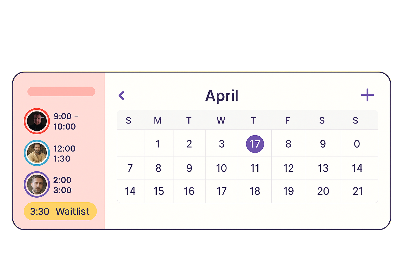 Όλο το ημερολόγιο σε μία εικόνα. Βλέπεις ποιος έρχεται, πότε, και ποιες ώρες είναι γεμάτες ή διαθέσιμες χωρίς να ψάχνεις.